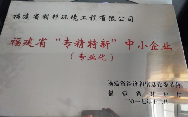 公司被福建省工信部認(rèn)定為:福建省“專精特新”中小企業(yè)