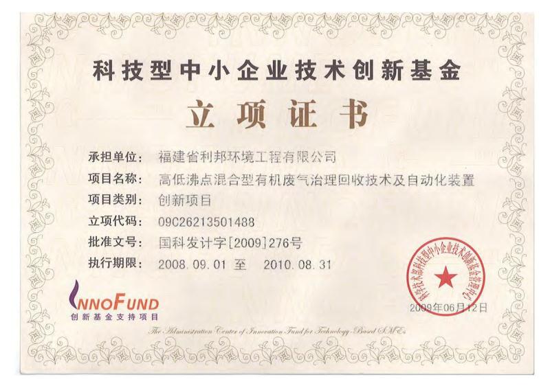 福建省科技型企業(yè)、福建省創(chuàng)新性企業(yè)、福建省首批科技小巨人、福建省“專精特新”專業(yè)化企業(yè),擁有企業(yè)研發(fā)中心、福建省有機廢氣凈化設(shè)備工程技術(shù)研發(fā)中心;公司產(chǎn)品獲得科技部、環(huán)保部、商務(wù)部、國家質(zhì)量監(jiān)督總局頒發(fā)的“國家重點新產(chǎn)品”證書,“中低濃度揮發(fā)性有機物回收凈化裝備”被列入《國家鼓勵發(fā)展的重大環(huán)保技術(shù)裝備目錄(2017年版)》;公司核心發(fā)明專利分別獲得了中國專利獎優(yōu)秀獎、福建省專利獎二等獎等專利獎項,其中兩個核心技術(shù)分別獲得福建省技術(shù)發(fā)明獎二等獎、福建省科學(xué)技術(shù)進(jìn)步獎二等獎;公司